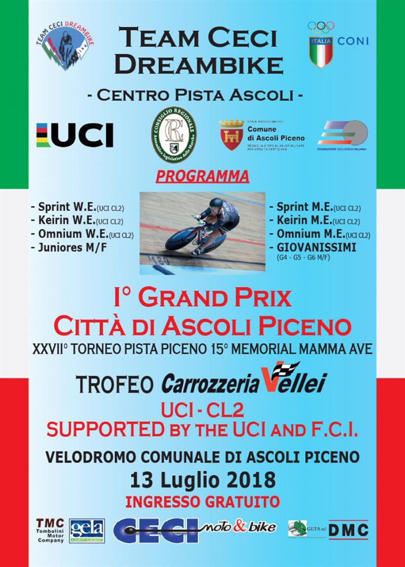 ASCOLI PICENO (AP) – Appuntamento mercoledì 11 e giovedì 12 luglio con il “2° International Piceno Sprint Cup”, gara di ciclismo su pista che si svolgerà presso il Velodromo comunale di Ascoli Piceno. Nella stessa location venerdì 13 luglio si effettuerà invece “1° Grand Prix Città di Ascoli”.