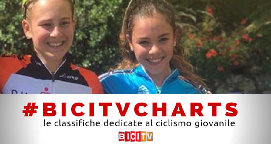 CHALLANCIN METTE LA FRECCIA TRA LE ALLIEVE? – Al momento al comando delle Charts figura ancora Lucia Bramati, autrice di una stagione splendida. Tuttavia Giulia Challancin, con il secondo posto di Chies d’Alpago, la tallona a soli 13 punti. Insomma, se Lucia Bramati dovesse smettere in gareggiare in vista della stagione del ciclocross, alla valdostana Challancin basterebbe un piazzamento tra la Coppa Italia e il campionato italiano di società per mettere la freccia sulla coetanea. Terzo posto per Noemi Plankensteiner, che dovrà difendersi da Gaia Tormena.