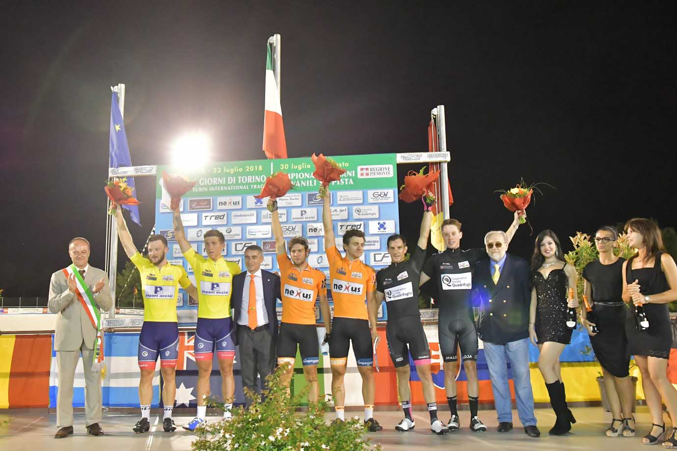 SAN FRANCESCO AL CAMPO (TO) – Alla fine ce l’hanno fatta: il torinese Mattia Viel e l’australiano Nick Yallouris (in maglia Nexus) hanno vinto l’edizione 2018 della 6 Giorni di Torino al Velodromo “Pietro Francone” di San Francesco al Campo, regalandosi anche il nuovo record della pista nel giro lanciato (21″348).