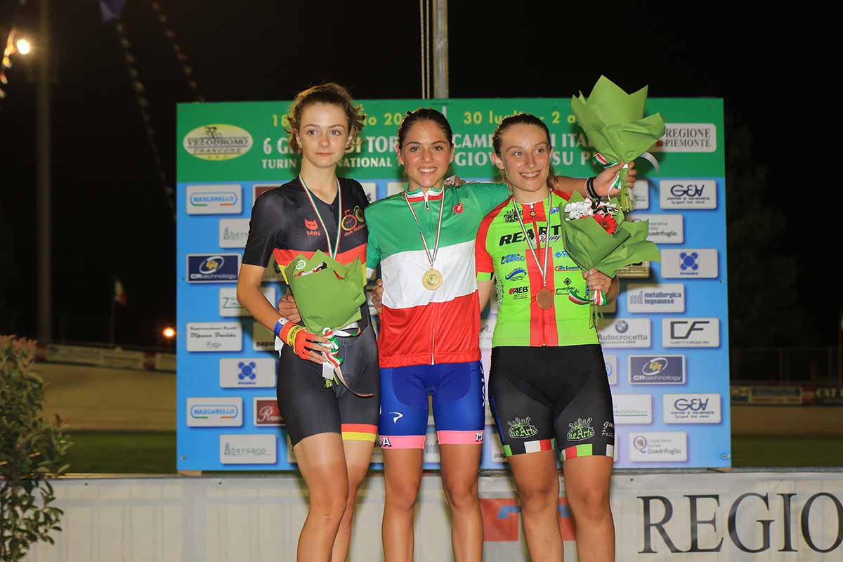 Grande performance per l’atleta diretta da Sara Villa che che ha conquistato la prova e la sua prima maglia tricolore della carriera con 17 punti. Seconda a 16 punti la veneta Giulia Miotto (Club Ciclistico Este) e terza la romagnola Gaia Bolognesi (Re Artù Factory Team) con 13 punti.