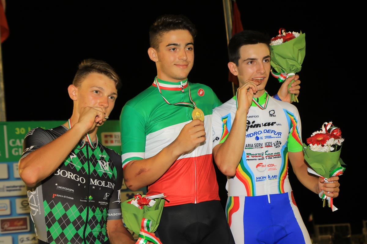 Il corridore piemontese ha avuto la meglio in finale del friulano Lorenzo Ursella (Rinascita Ormelle Friuli). Terzo posto per il toscano Tommaso Dati (Ciclistica San Miniato) – già tricolore nel Keirin -, che ha battuto il veneto Giovanni Venturella (Veloce Club Isolano).