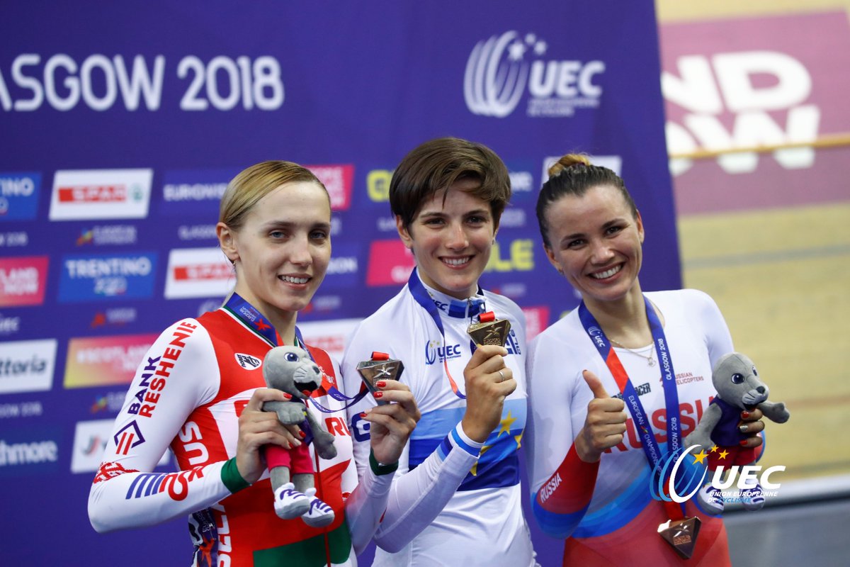 GLASGOW (GRAN BRETAGNA) – Una grandissima prestazione, fatta di testa e di gambe, e la brianzola Maria Giulia Confalonieri si laurea campionessa europea della Corsa a punti a Glasgow. Un risultato strepitoso per l’atleta tesserata per la Valcar-PBM che ha interpretato con coraggio e una tattica perfetta la competizione. Prima ha guadagnato un giro determinante e nell’ultima volata si è andata a prendere i due punti decisivi che per una lunghezza le hanno consegnato la vittoria. Secondo posto e medaglia d’argento per la bielorussa Ina Savenka e terza e medaglia di bronzo per la russa Gulnaz Badykova.