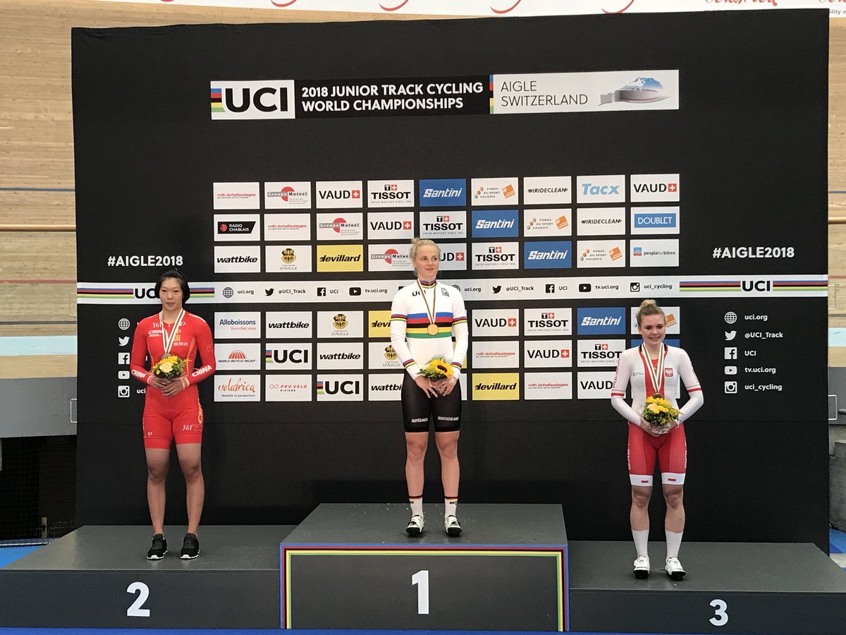 Al termine della Corsa a punti finale condotta con autorità a concluso con 141 punti precedendo la russa Daria Malkova, medaglia d’argento con 124 punti, e terza la polacca Marta Jaskulska, medaglia di bronzo con 117 punti.