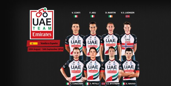 UAE Team Emirates pronta per la Vuelta: Fabio Aru e Daniel Martin i fari