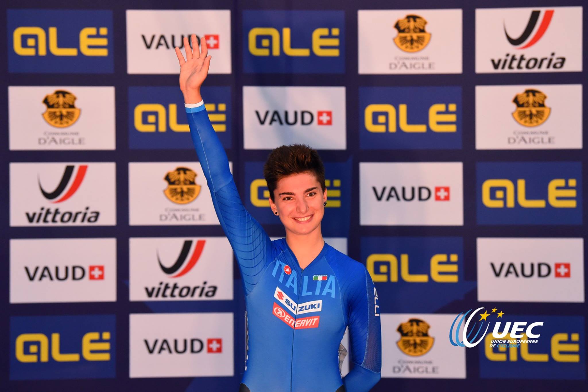 AIGLE (SVIZZERA) – Formidabile Gloria Scarsi che ai Campionati Europei su pista Junior e Under 23 di Aigle (Svizzera) conquista la terza medaglia d’oro personale in due giorni, la seconda della giornata. Ieri si era fregiata del titolo europeo dello Scratch, oggi, poco tempo prima aveva dato il suo contributo nella conquista del titolo dell’Inseguimento a squadre e in serata è andata a vincere con autorità anche il titolo europeo dell’Eliminazione Donne Junior. E non dimentichiamo che con le compagne del quartetto sei giorni fa avevano conquistato il titolo mondiale dell’Inseguimento a squadre. Insomma una settimana d’oro, ma nel vero senso del termine, per la ligure di Albenga, tesserata per la Valcar-PBM.