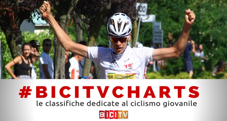 Nuovo appuntamento settimanale con le #BICITV Charts, le classifiche nazionali del ciclismo giovanile di BICITV che potete trovare ogni giovedì sul nostro sito internet. Il vincitore di ogni categoria verrà premiato durante la magica serata dei BICITV Awards 2018, l’unico evento dedicato a chi ama il ciclismo con passione sfrenata che si svolgerà sabato 17 novembre a Nembro (Bg).