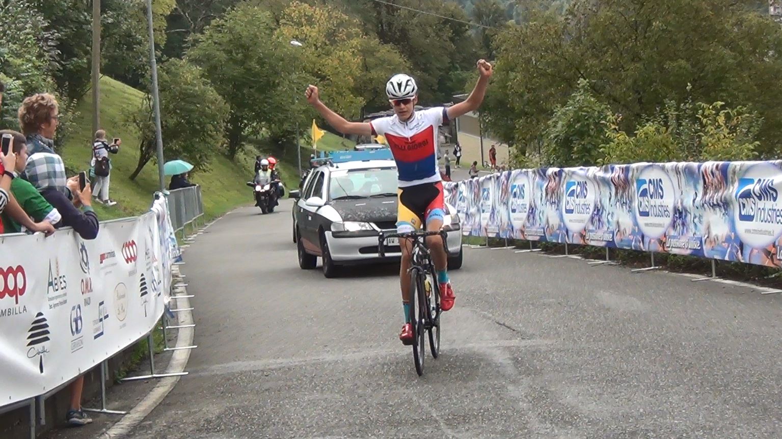 A poche centinaia di metri dallo scollinamento il ceco Vacek stacca il compagno e resta solo in testa alla corsa. Scollina con 13″ di vantaggio e si lancia in discesa verso Brembilla dove taglia il traguardo per primo con 35″ di vantaggio sul compagno Andrea D’Amato. Terzo posto per Massimiliano Pini (Ciclistica Trevigliese) a 1’08”, Quarto Lorenzo Facchi (Vc Sarnico) a 1’12” e quinto il padrone di casa Davide Invernizzi (Pedale Brembillese) a 1’18”.
