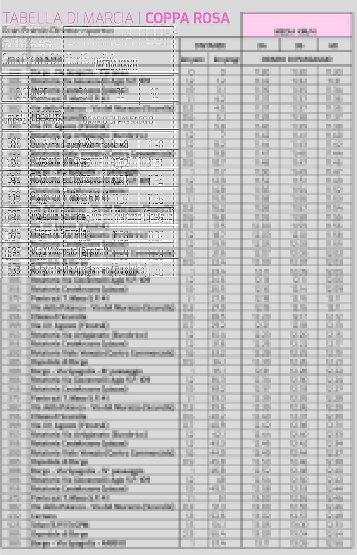 NOTE: La firma del foglio di partenza è obbligatoria. Date le caratteristiche del percorso, saranno ammesse al seguito solo le vetture ufficiali dell’organizzazione e quelle utilizzate dagli organi tecnici di controllo.