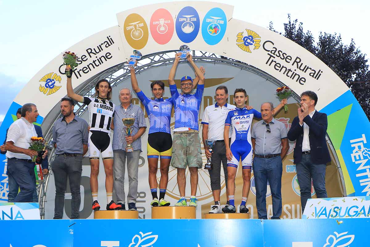BORGO VALSUGANA (TN) – Lorenzo Montanari (Pedale Azzurro Rinascita) ha vinto la 12/a Coppa di Sera per Esordienti 2° anno. La corsa si è decisa con una volata di gruppo serratissima, al termine della quale il 14enne romagnolo di San Zaccaria di Ravenna si è lasciato alle spalle il veneto Alessio Delle Vedove (Ass. Dilett. Uc Mirano) ed il trentino Alessandro Noto (Us Montecorona).