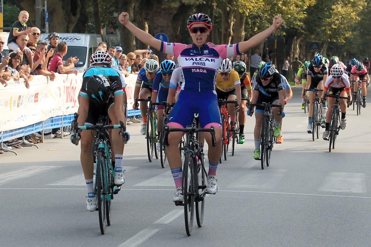La reazione del gruppo è però repentina e riesce a vanificare anche questo tentativo di attacco. L’ultimo allungo porta la firma di Giada Lucchi, junior della Mendelspeck che sfrutta un rallentamento generale, ma anche in questo caso l’attacco non ha fortuna. L’epilogo a ranghi compatti si apre con una caduta che coinvolge numerose atlete e spezza il gruppo quando manca ancora qualche centinaio di metri al traguardo. La volata per la vittoria è un testa a testa tra Gloria Scarsi (Valcar PBM) e Martina Fidanza (Eurotarget Bianchi Vitasana) e si risolve in favore della junior ligure che conferma così di attraversare uno splendido momento di forma. Nonostante un perfetto colpo di reni Martina Fidanza deve accontentarsi della seconda piazza assoluta e prima tra le Elite. Terza la portacolori della squadra di casa Francesca Selva, seconda Elite. La russa Maria Rostovtseva (Team Tula), quarta assoluta, completa il podio delle Elite. Silvia Zanardi (VO2 Team Pink) e Marika Botton (Conscio Pedale del Sile), rispettivamente quinta e settima assoluta, sono seconda e terza delle Junior.