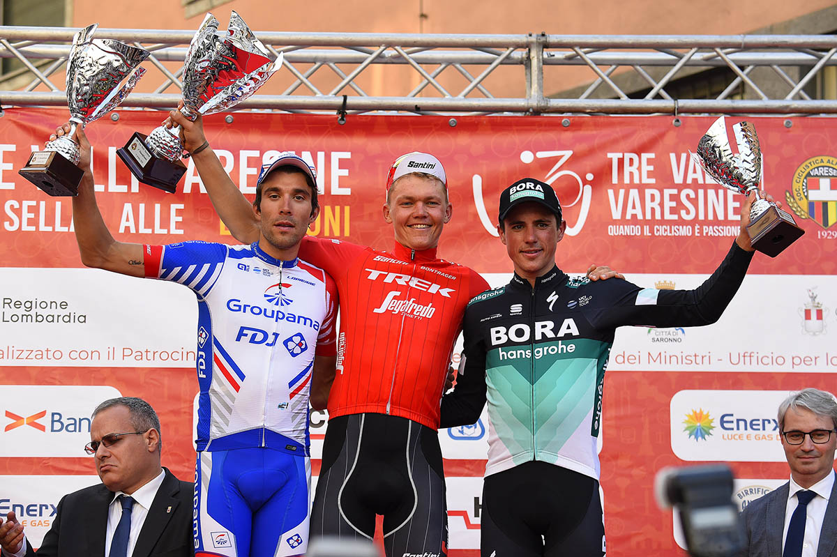VARESE (VA) – Il lettone Toms Skujins (Trek-Segafredo) vince l’edizione 2018 della Tre Valli Varesine, regolando allo sprint un drappello di sette corridori che sono arrivati a contendersi il successo sul traguardo di Varese. Secondo posto per il francese Thibaut Pinot (Groupama-FDJ) e terzo il britannico Peter Kennaugh (Bora-Hansgrohe).