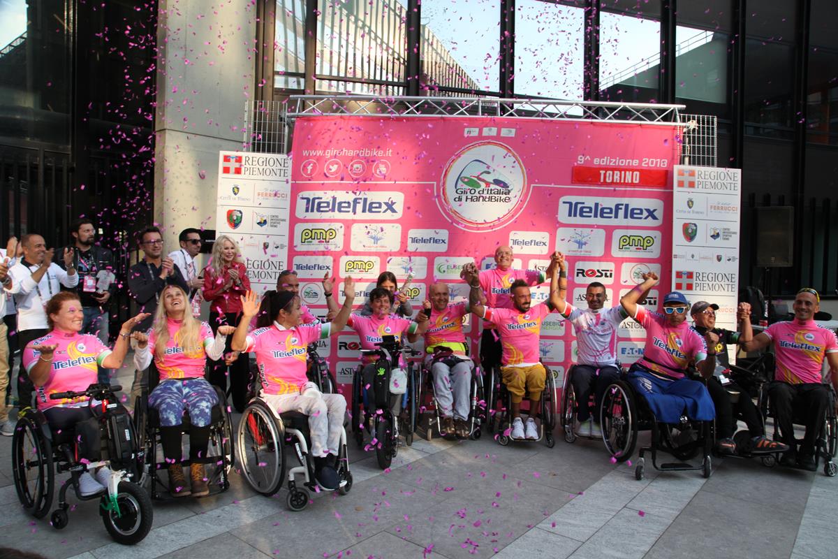 Conquistano la maglia rosa TELEFLEX del Giro d’Italia di Handbike 2018: Riccardo Cavallini (Cat. MH1) a.s.d You Can; Umberto Pascoli (Cat. MH2) Brancacicloni a.s.d.; Alex Landoni (Cat. MH3) GSC Gianbenini; Christian Giagnoni (Cat. MH4) Alove Team a.s.d.; Fabrizio Bove (Cat. MH5) Anmil Sport Italia; Alberto Glisoni (Cat. MHO) Alove Team a.s.d. Natalia Beliaeva (Cat. WH1) a.s.d. Cooperatori; Roberta Amadeo (Cat. WH2) Team MTB Bee and Bike Bregnano; Francesca Porcellato (Cat. WH3) Active Team la Leonessa; Silke Pan (Cat. WH4) Active Team la Leonessa.