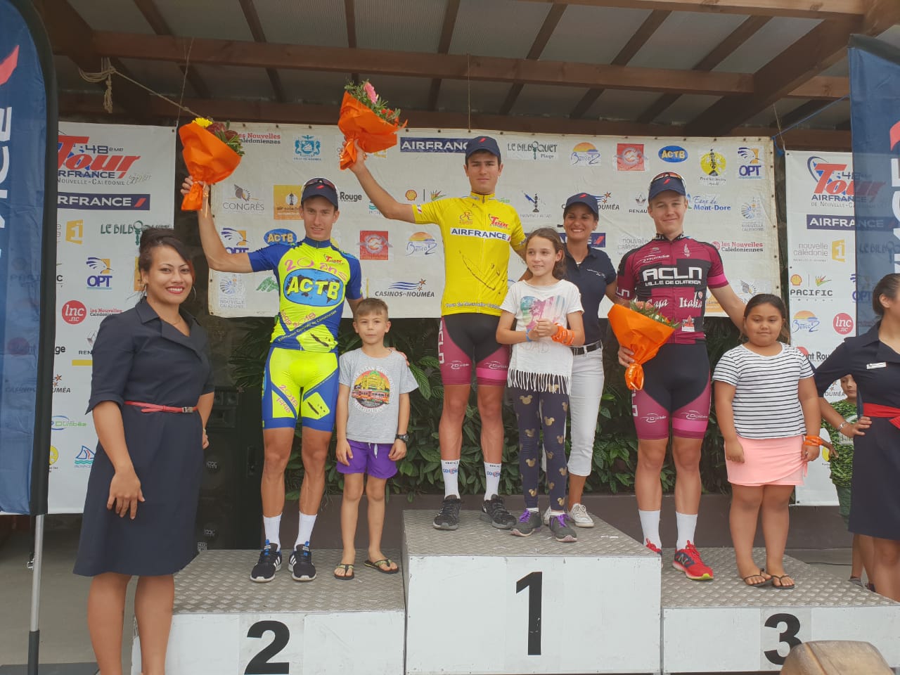 La nuova giornata da protagonista ed il prezioso piazzamento hanno regalato al trentino Riccardo Lucca la leadership della classifica generale di Le Tour Air France Nouvelle Caledonie e domani, nella quarta tappa Mairie de Bourail – Mine du Cap Bocage di km 105,500, vestirà la maglia gialla. Il corridore della Colpack è anche in testa alla classifica dei giovani. Konychev e Ippolito occupano rispettivamente la quinta e la sesta posizione in classifica generale.