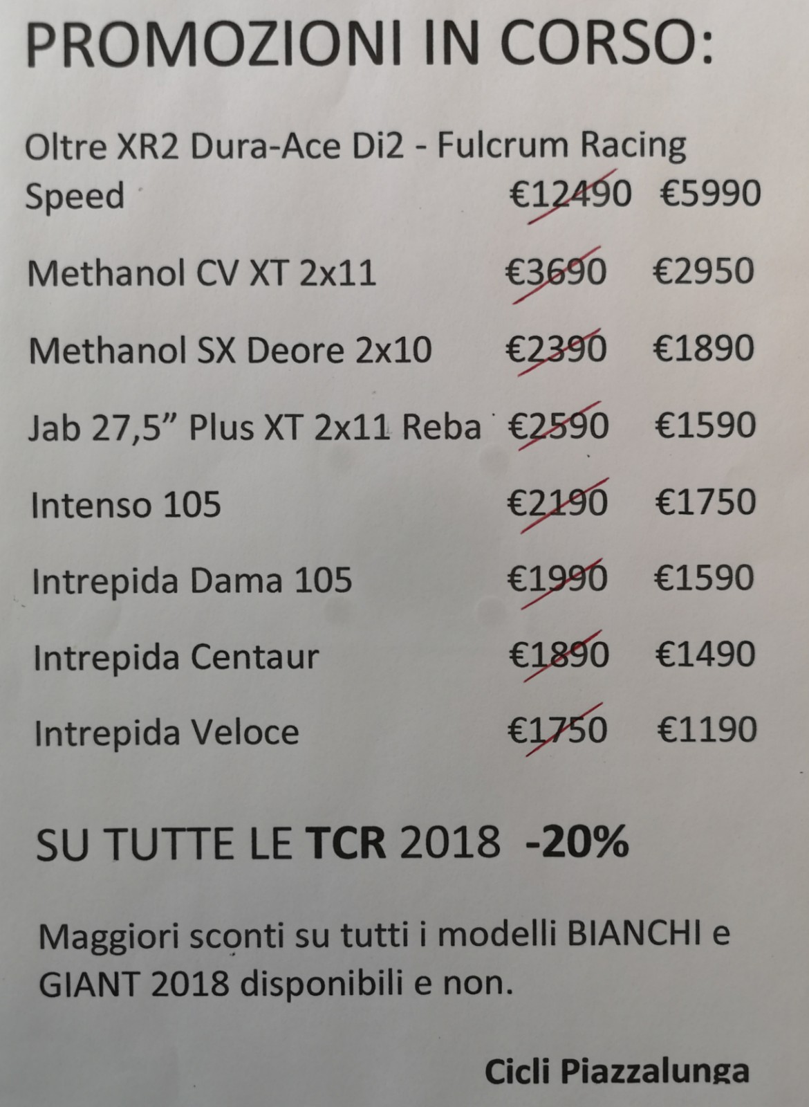 EXTRA SCONTO SULLE BICICLETTE: extra sconto del 5% su tutte le biciclette Bianchi e Giant anche su quelle già in promozione