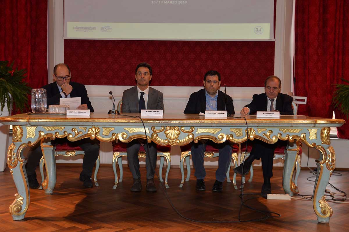 RECANATI (MC) – Nell’Aula Magna del Comune di Recanati – città natale del poeta Giacomo Leopardi e che domenica 17 marzo ospiterà una delle tappe più spettacolari della Corsa dei Due Mari 2019 – è stata presentata la 54^ edizione della Tirreno-Adriatico NamedSport in programma dal 13 al 19 marzo 2019 e organizzata da RCS Sport/La Gazzetta dello Sport.