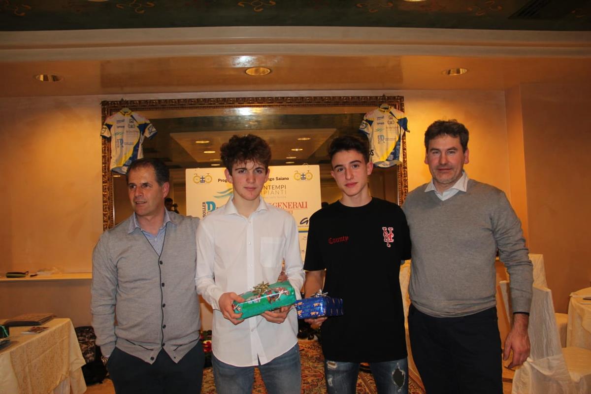 Premiazione speciale per gli Allievi Alex Bono e Nicolas Borsarini a cui è stata riconosciuta la fiducia dato che tagliano l’importante traguardo di 10 anni di militanza con la maglia della Progetto Ciclismo Rodengo Saiano.