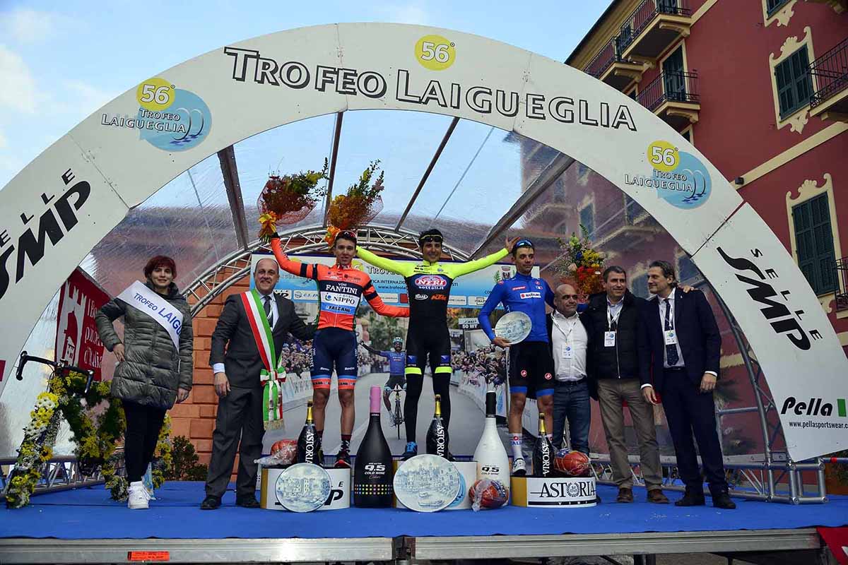 Sul podio con lui sono saliti Nicola Bagioli (Nippo – Vini Fantini – Faizane), primo nello sprint del gruppetto inseguitore, e terzo il giovane cuneese Matteo Sobrero, in gara con la maglia della Nazionale italiana, lui che è ancora Under 23 con la formazione di sviluppo della Dimension Data.