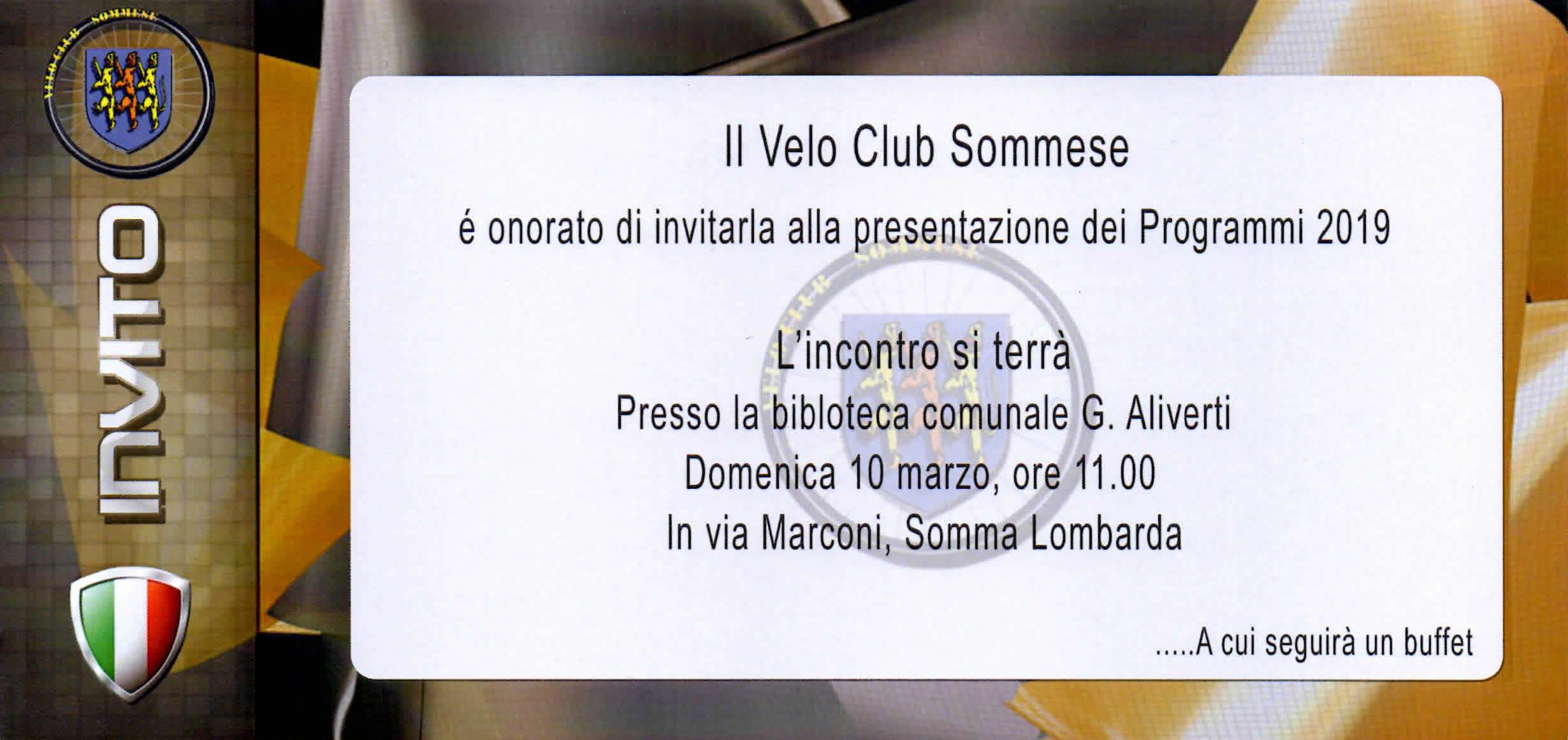 SOMMA LOMBARDO (VA) – Domenica 10 marzo, alle ore 11, alla Biblioteca comunale G. Aliverti di via Marconi a Somma Lombardo, il Velo Club Sommese presenterà ufficialmente i programmi dell’attività organizzativa e agonistica per la stagione 2019.