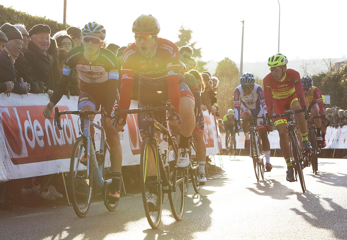 Il 18° Gran Premio De Nardi ha visto al via 136 corridori ed è vissuto sulla lunga fuga di cinque atleti: Salvador (Northwave), Pietrobon e Abenante (Zalf), Tasca (Work Service) e Bauce (Delio Gallina). Questo quintetto così ben assortito ha raggiunto un vantaggio massimo di 1’20” prima di essere riassorbito dal gruppo; nonostante la bagarre finale il plotone si è presentato quindi compatto sul rettifilo d’arrivo posto in leggera ascesa. Qui, a fare la differenza, è stata proprio la potenza e la brillantezza del 21enne vicentino di Thiene, Stefano Cerisara alla sua prima affermazione tra gli Under 23 che ha preceduto nettamente Giulio Masotto (Team Colpack) e il vincitore della Firenze-Empoli, Martin Marcellusi (Team Palazzago).