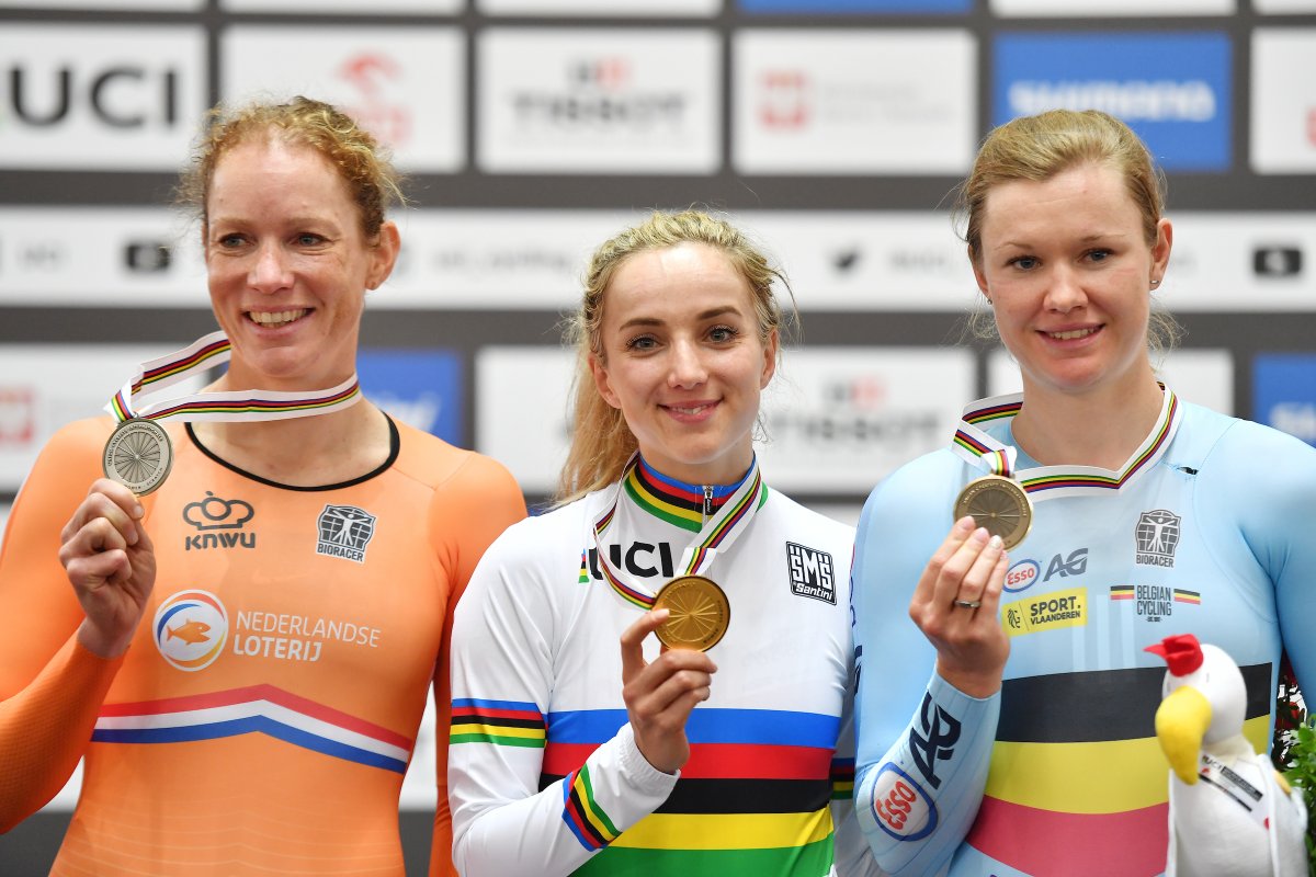 Sono stati assegnati anche i titoli della velocità a squadre, In campo maschile vittoria dell’Olanda (Hoogland, Lavreysen, Van Den Berg) in 41”923, seconda la Francia (Bauge, Lafargue, Sebastien Vigier), terza la Russia, quarta la Germania.