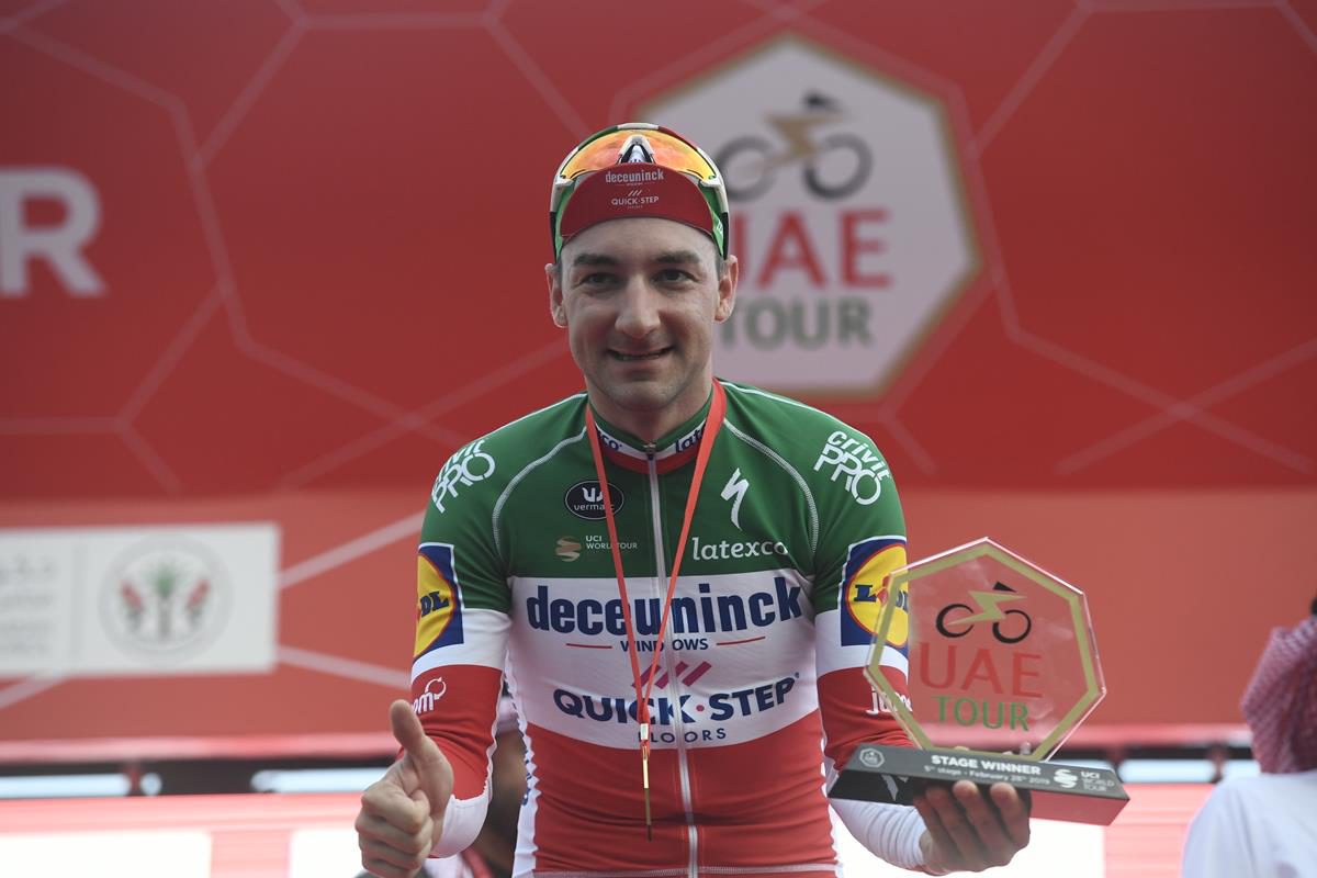 Elia Viviani vincitore della quinta tappa dell’UAE Tour (foto LaPresse)