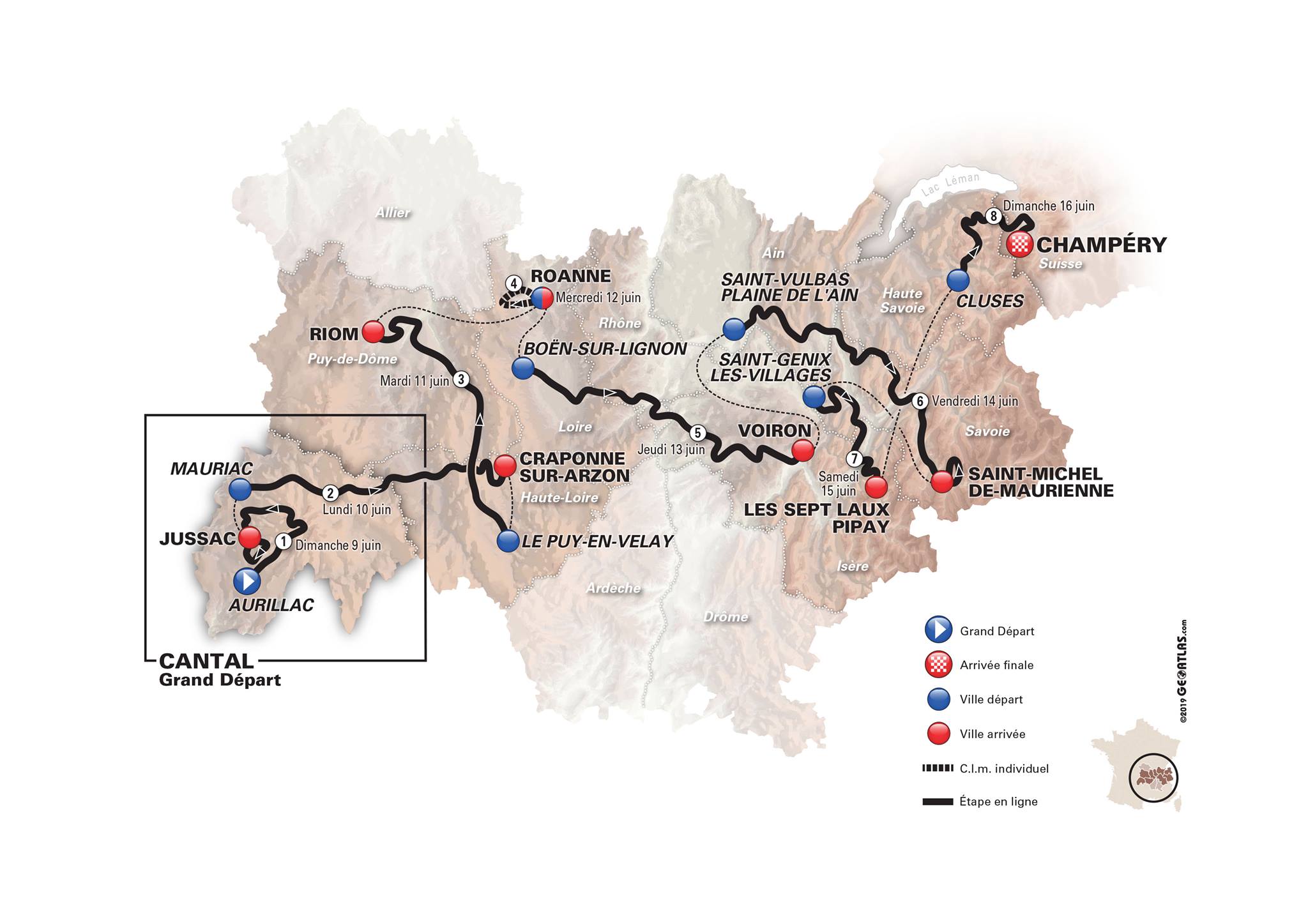 Il 9 giugno il Giro del Delfinato scatterà per la prima volta dal Dipartimento di Cantal ed il percorso complessivo misura 1.200 chilometri che porteranno la carovana ad attraversare anche nuove strade e località, mentre la conclusione sarà in territorio svizzero, presso lo ski resort di Champéry.