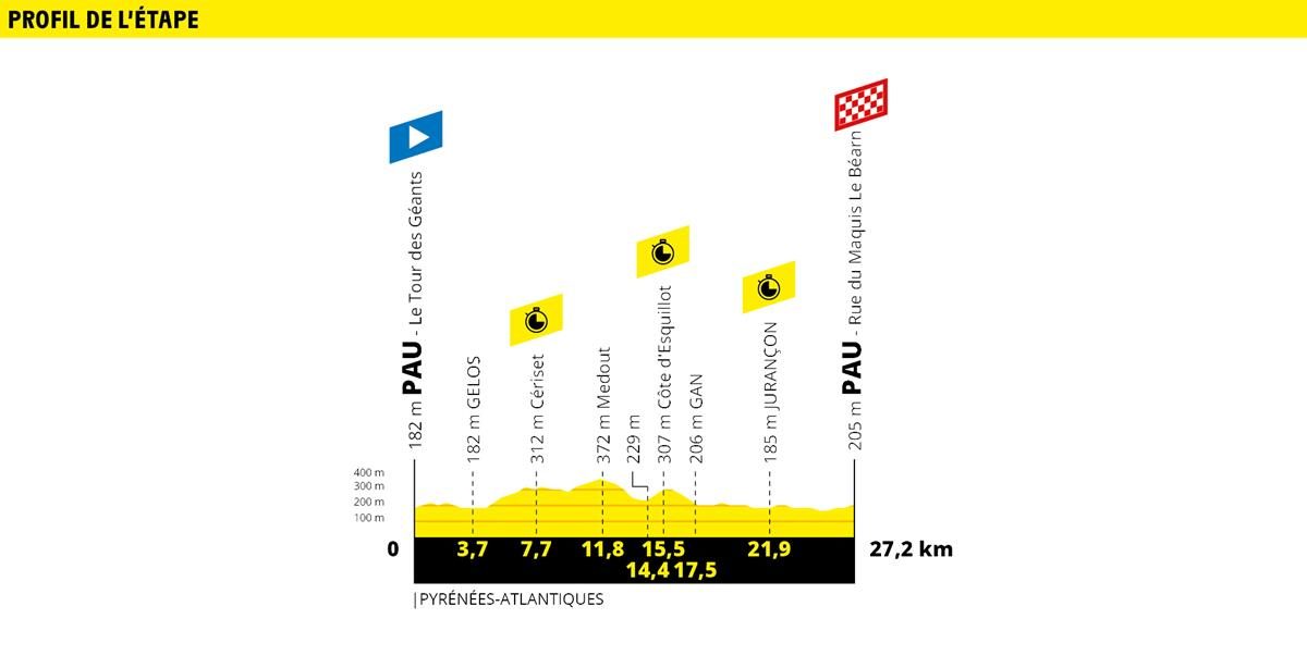 13/a tappa: venerdì 19 giugno | Pau – Pau (Cronometro, 27,2 km)