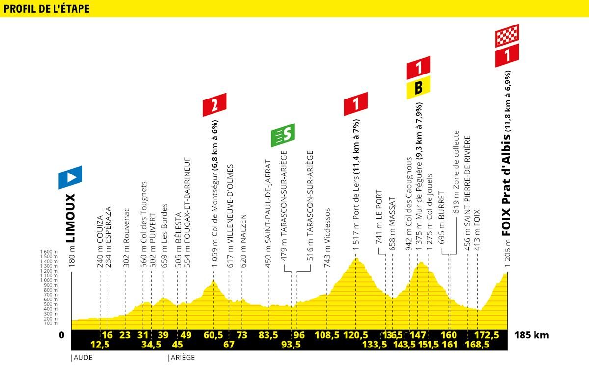 15/a tappa: domenica 21 giugno | Limoux – Foix Prat d’Albis (185 km)