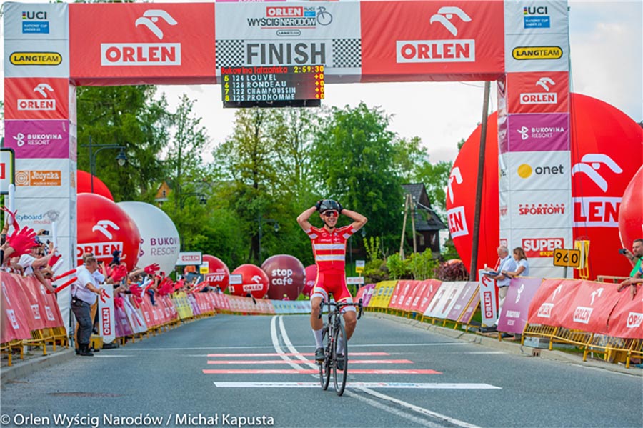 BUKOWINA TATRZANSKA (POLONIA) – Al termine di due tappe spettacolari e molto combattute, il corridore francese Nicolas Prodhomme si aggiudica la prima edizione dell’Orlen Nations Grand Prix. Alle sue spalle il danese Andreas Kron, vincitore della tappa odierna (Bukovina Resort – Bukowina Tatrzanska 113 Km) che ha mancato il successo nella classifica generale per solo 9”. Sul terzo gradino del podio finale il belga Ilan Van Wilder, distanziato di 26”.