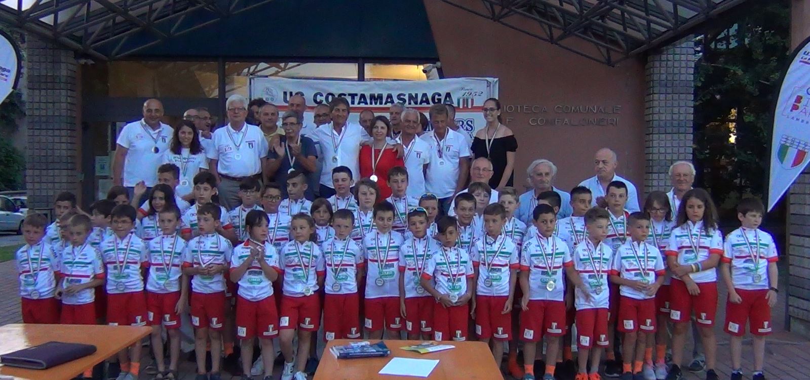 COSTA MASNAGA (LC) – Tutti gli applausi rivolti a loro: ai giovani ciclisti. Venerdì sera, nella piazza antistante il complesso del comune di Costa Masnaga, si è tenuta la festa per la conquista del secondo posto, al recente Meeting Nazionale Giovanile di società disputato a Matera, da parte del gruppo Giovanissimi (7/12 anni) dell’Uc Costamasnaga La Piastrella System Cars, sodalizio che ha conquistato un prestigioso secondo posto. Per l’occasione presentata anche la seconda edizione de Il Lombardia Giovani.