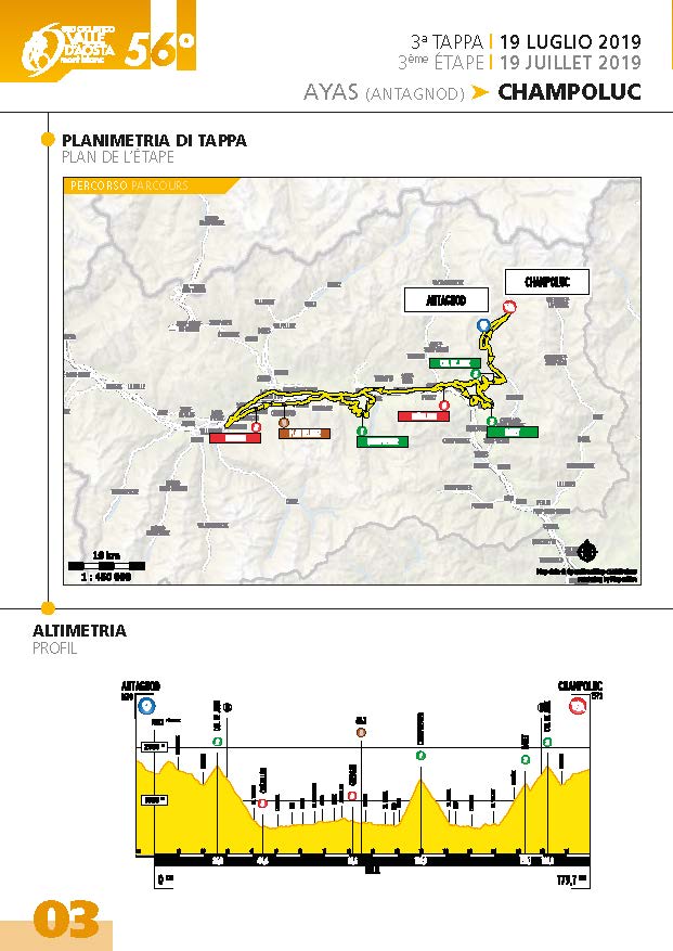 Venerdì 19 luglio, poi, ci sarà la tappa più lunga della corsa, 179 chilometri da Antagnod a Champoluc con le asperità del Col de Joux (2 volte), dello Champremier e di Emarèse.