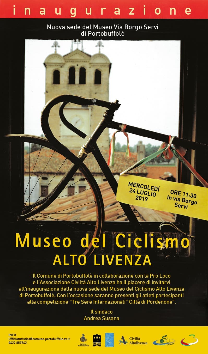 PORTOBUFFOLÈ (TV) – Mercoledì 24 luglio alle ore 11:30 sarà inaugurata ufficialmente la nuova sede del Museo del Ciclismo Alto Livenza a Portobuffolè (Treviso), seguirà un ricco buffet per tutti i presenti.