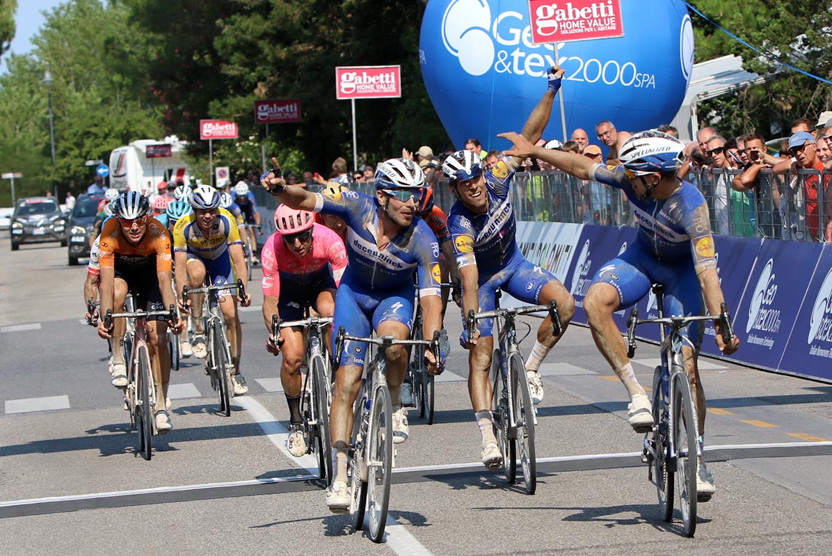 GRADO (GO) – Visto che la seconda tappa della Adriatica Ionica Race si annunciava in “stile fiammingo” con oltre 23 km di sterrato, il Team Deceuninck-Quick Step era dato come logico favorito, ciò nonostante il risultato finale ha superato ogni aspettativa. Lo squadrone belga ha infatti realizzato una clamorosa tripletta sul traguardo di Grado, dove il colombiano Alvaro Jose Hodeg ha battuto allo sprint i suoi compagni di scuderia Florian Senechal and Philippe Gilbert, conquistando anche la maglia di leader della classifica generale. Sacha Modolo (EF Education First), quarto, il migliore degli italiani.