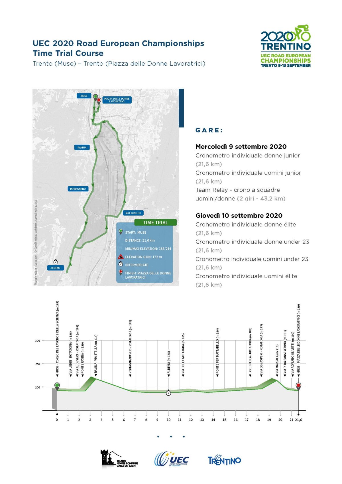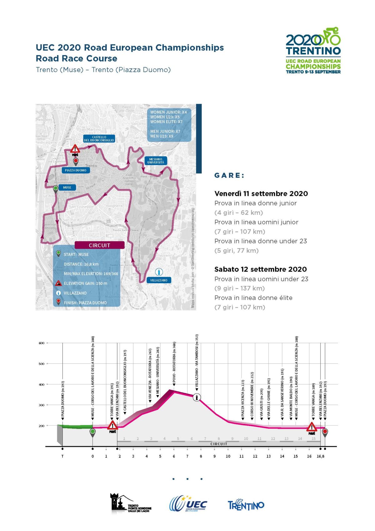 “Sono state fatte scelte molto azzeccate – ha commentato Cassani -. Fare crono più corte vuol dire rendere più competitivi i giovani e stimolarli a curare questa disciplina: Evenepoel è il mio favorito. Molto bello il tracciato della gara in linea con una prima parte impegnativa – per la sola categoria elite uomini – che prevede il Bondone, e poi il circuito finale con una salita pedalabile che renderà tatticamente interessante la corsa. Un terreno ideale per Sagan, per Van der Poel, ma anche per il nostro Trentin. Vivremo grandi giornate in un territorio che è molto ciclistico e molto ciclabile“.