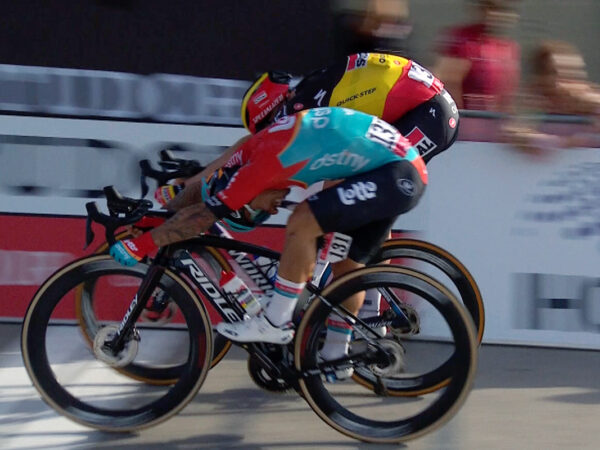 Anche da parte di Merlier, come già ieri è avvenuto con De Buyst, subito dopo il traguardo, è partito un dito diretto al cielo con dedica alla memoria del compagno Bjorg Lambrecht.