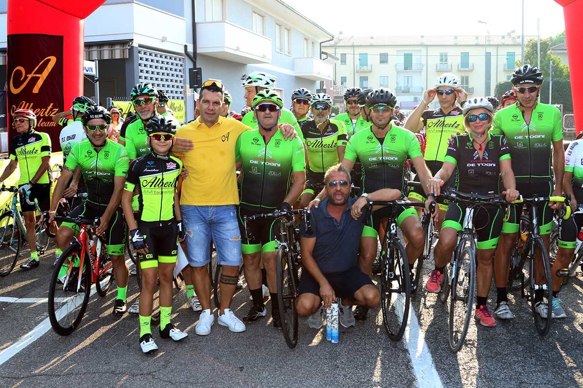 Al via anche le ex glorie del ciclismo veronese protagoniste nel periodo del grande campione Felice Gimondi al quale è stato dedicato un momento commemorativo. Emozioni al via con coriandoli gialli verso il cielo per salutare gli amici che ci hanno lasciato.