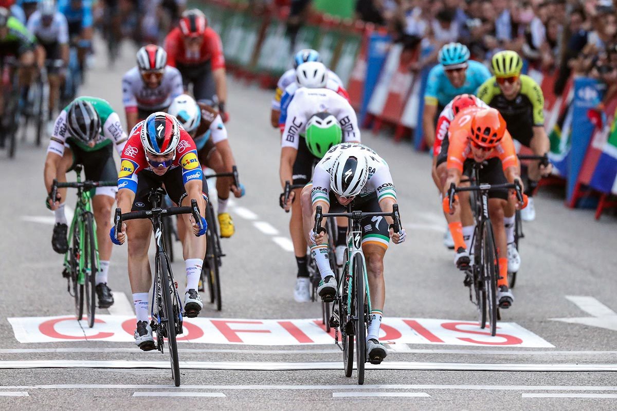 Fabio Jakobsen batte Sam Bennett nell’ultima tappa della Vuelta Espana 2019 (foto BettiniPhoto)