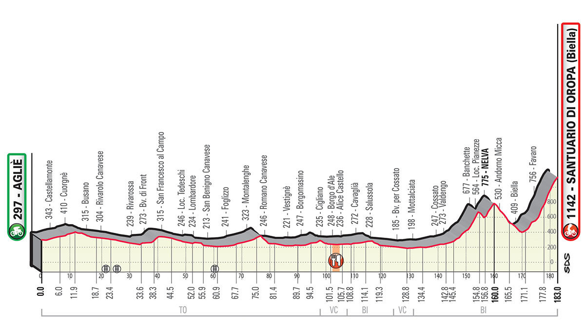 Percorso impegnativo per la 103esima edizione della classica piemontese. Partenza da Agliè e arrivo al Santuario di Oropa (Biella) dopo 183 chilometri. Diventano 19 le formazioni al via con l’aggiunta del Team Ineos di Bernal. Annunciato al via anche il vincitore del Giro d’Italia Carapaz. Diretta su Rai Sport + HD dalle 14.30.