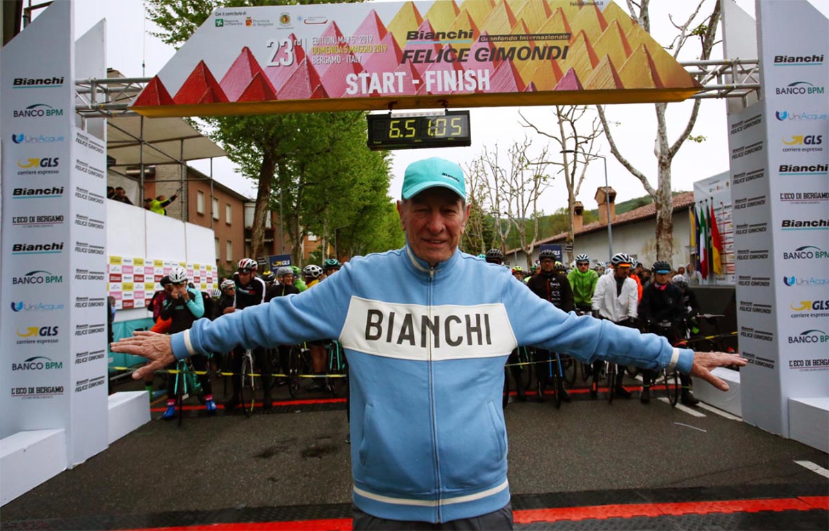 BERGAMO (BG) – Ricordare Felice col sorriso, lasciandosi ispirare dalla nostalgia senza farsi travolgere. È la missione abbracciata dagli organizzatori della Granfondo Felice Gimondi – Bianchi, che hanno scelto di omaggiare l’asso del ciclismo orobico, raccogliendo tutte le maglie della sua carriera in una nuova accattivante veste grafica. Sarà quello l’emblema e il simbolo della “nuova” GF Gimondi, che si prepara ad aprire da lunedì 11 Novembre le iscrizioni alla 24esima edizione, in programma domenica 10 maggio 2020 a Bergamo.