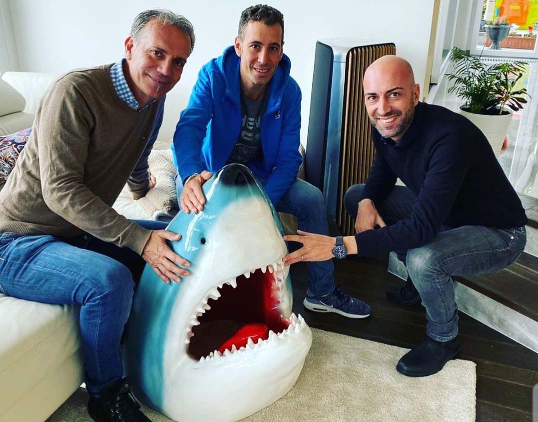 PARIGI (FRANCIA) – Oggi, 14 novembre, Vincenzo Nibali compie 35 anni. Ieri ha ricevuto la vista dei suoi manager, i fratelli Johnny e Alex Carera che gli hanno portato in dono una simpatica testa di squalo in vetroresina, che Vincenzo ha mostrato sui social. L’incontro è avvenuto a Parigi alla vigilia della partenza per Shanghai dove domenica il siciliano parteciperà al Criterium.