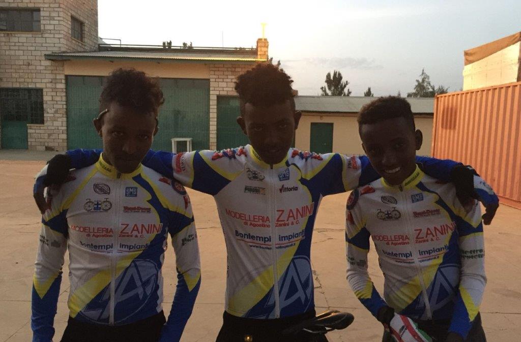 I ragazzi del villaggio di Adwa in Etiopia con le maglie della Progetto Ciclismo Rodengo Saiano