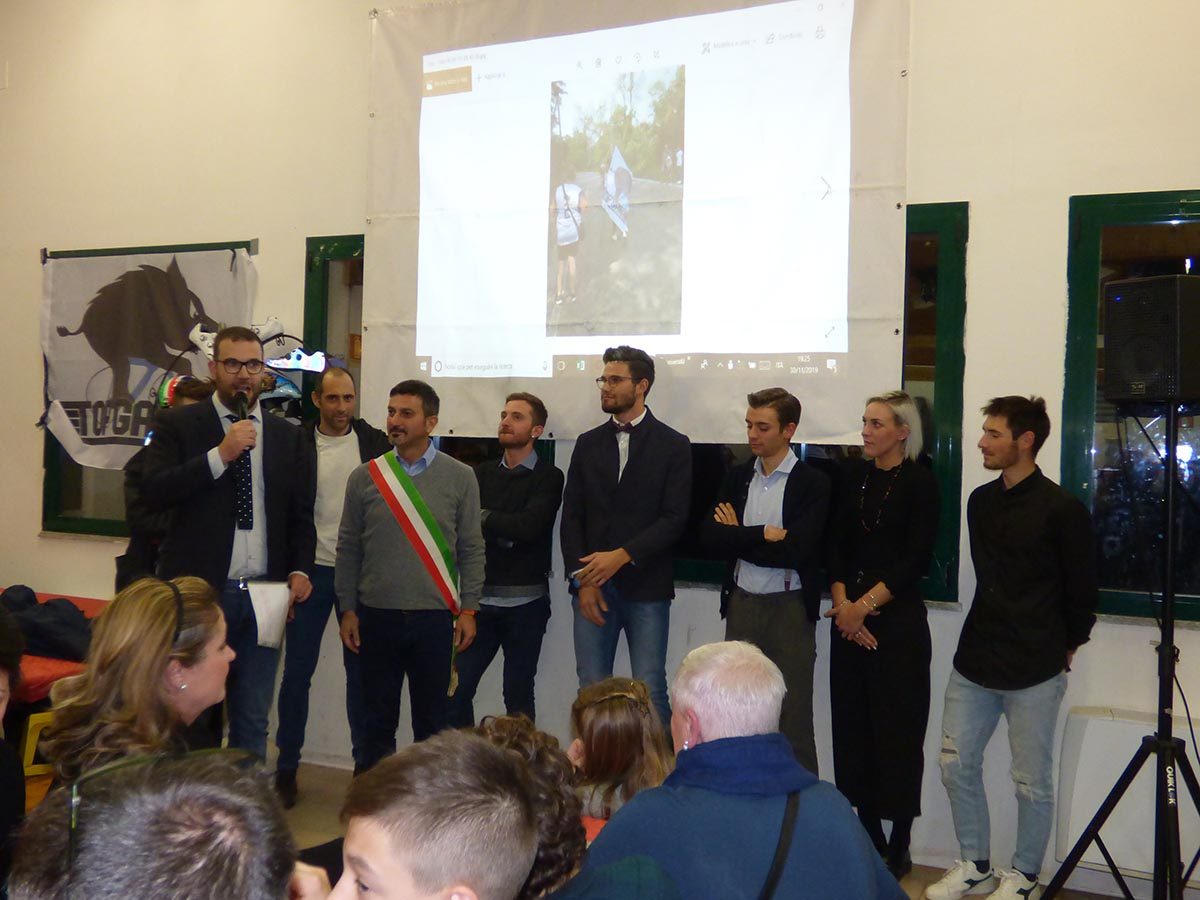 Al termine del filmato, il benvenuto del sindaco di Vignone Giacomo Archetti che ha espresso l’orgoglio del paese per il proprio campione, con Ganna che ha ricambiato regalando al primo cittadino una maglia iridata autografata. Poi spazio ai racconti di Filippo, che tra i ricordi di un 2019 ormai in archivio e gli sguardi verso il 2020 che culminerà nelle Olimpiadi di Tokyo è stato interrotto dalla telefonata da Hong Kong del ct azzurro Marco Villa, il quale – accompagnato dal finto comunicato preparato dalla segretaria federale del settore pista Paola Butrico, presente in sala – ha provato a improvvisare una convocazione in extremis per la prova di Coppa del Mondo su pista prevista in Nuova Zelanda nel fine settimana, ma senza riuscire a ingannare il verbanese.