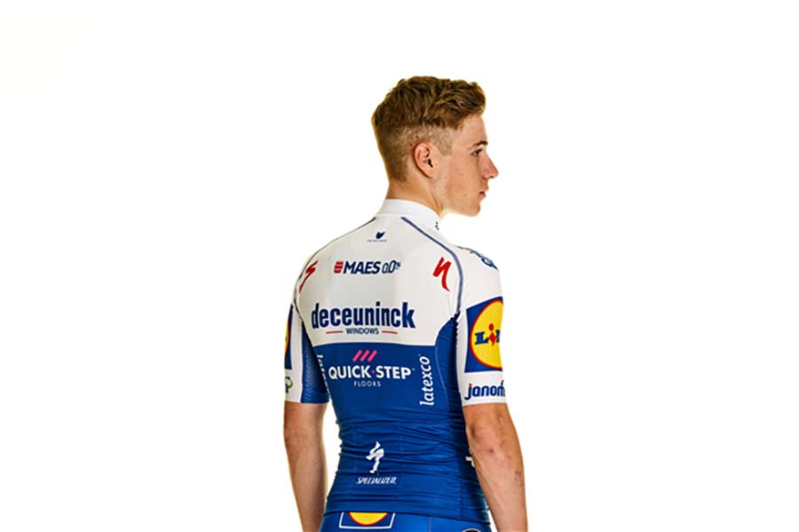 Uno degli atleti più rappresentativi della squadra, vincitore di cinque corse nel 2019, compreso il Campionato Europeo a cronometro e la Classica di San Sebastian – Remco Evenepoel – è stato modello d’eccezione e si è detto entusiasta della nuova divisa: “È molto diverso da quello che il team ha avuto negli anni passati, ma è davvero simpatico. La combinazione bianca e blu è bellissima e sono sicuro che si distinguerà in gruppo. Anche il lupo sul petto è fantastico e gli sponsor si adattano perfettamente. Non vedo l’ora di indossarlo nella mia prima gara e sono sicuro che anche i nostri fan lo adoreranno. Un grande ringraziamento a Vermarc e al team per aver creato un kit così straordinario ed elegante” (foto Sigfrid Eggers).