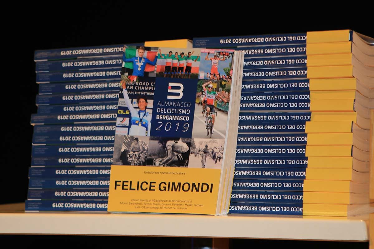 L’Almanacco del Ciclismo Bergamasco 2019 è una pubblicazione di 320 pagine di cui 40 dedicate al ricordo di Felice Gimondi con fotografie e testimonianze di oltre 60 personaggi, autorità e campioni del mondo del ciclismo tra cui: la figlia Norma Gimondi, il presidente del CONI Giovanni Malagò, il presidente della FCI Renato Di Rocco, il sindaco di Bergamo Giorgio Gori, il presidente della Provincia di Bergamo Gianfranco Gafforelli, gli assessori regionali Martina Cambiaghi e Lara Magoni, giornalisti e diversi campioni, tra cui Gianni Motta, Vittorio Adorni, Francesco Moser, Giuseppe Saronni, Giambattista Baronchelli, Michele Dancelli, Maurizio Fondriest, Gianni Bugno, Moreno Argentin, Cadel Evans, Alberto Contador, i bergamaschi Ivan Gotti e Paolo Savoldelli. Un’edizione da collezione.