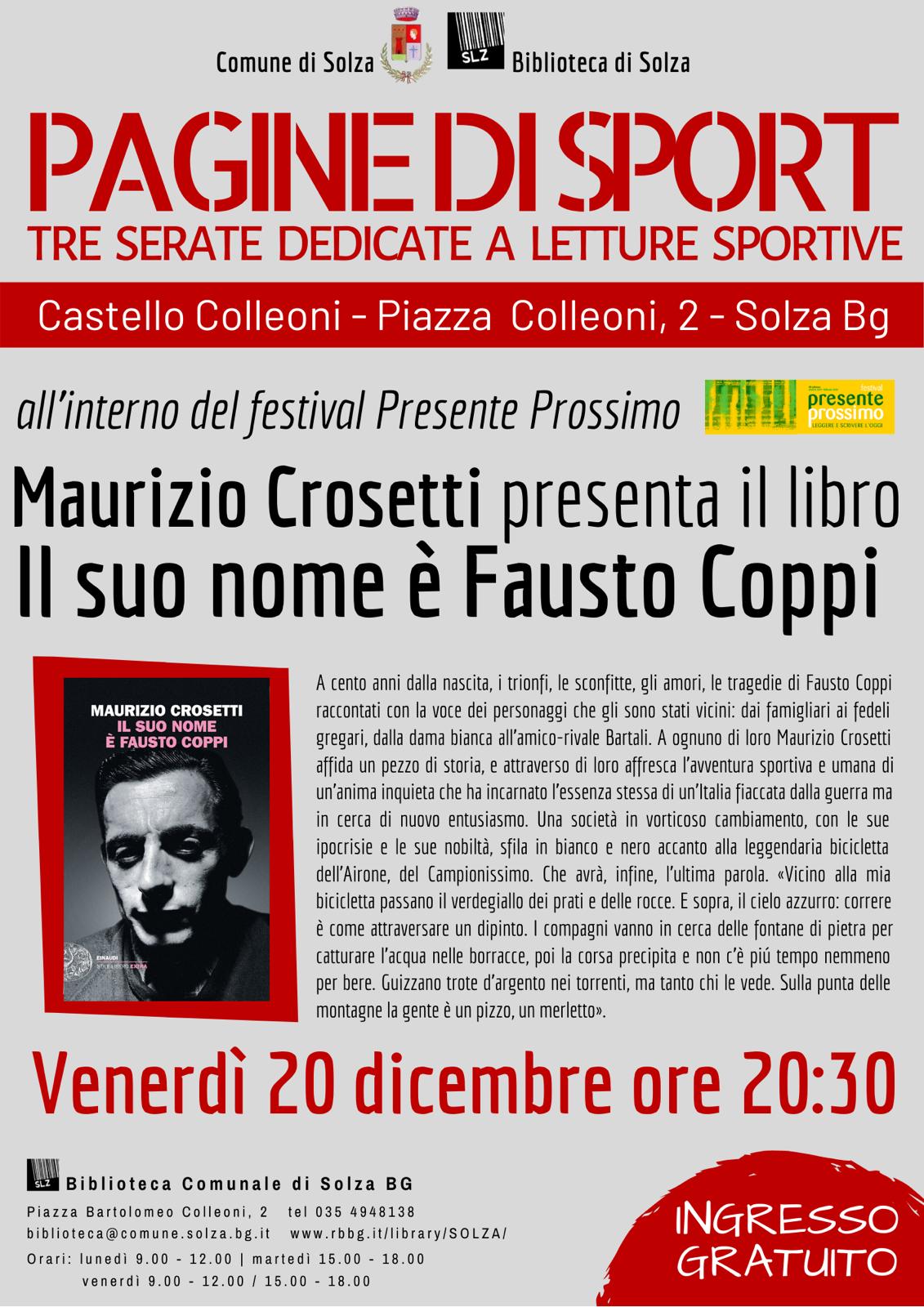 Venerdì 20 dicembre a Solza Maurizio Crosetti presenta il libro “Il suo nome è Fausto Coppi”