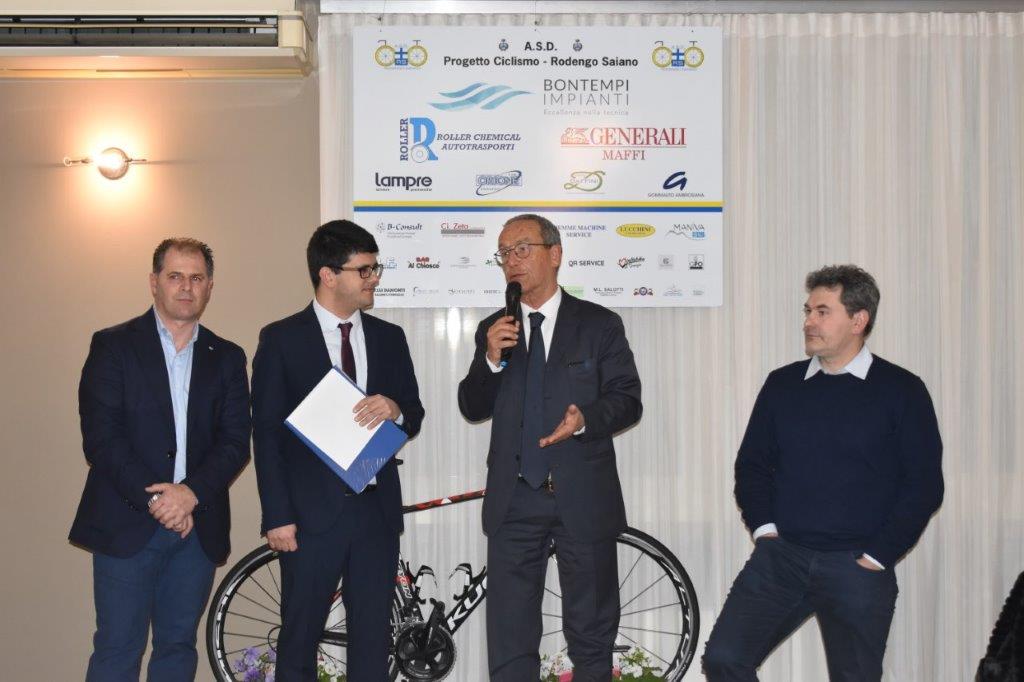 Il presidente della società, l’ex professionista Fabrizio Bontempi, con tutto il suo affiatato staff, hanno chiamato a raccolta, come consuetudine, atleti, genitori, collaboratori, amici e sponsor per una serata di festa in allegria. Diverse anche le autorità presenti: per la Federciclismo c’era il vice presidente nazionale Michele Gamba, il coordinatore della categoria Giovanissimi del Comitato Regionale Lombardo FCI Andrea Toni, poi il sindaco di Rodengo Saiano Luigi Caimi e, ospite d’onore, l’ex professionista bresciano della UAE Team Emirates Roberto Ferrari che da qualche mese ha deciso di appendere la bici al chiodo, dopo 12 anni di onorata carriera nella quale spicca anche una vittoria di tappa al Giro d’Italia 2012.