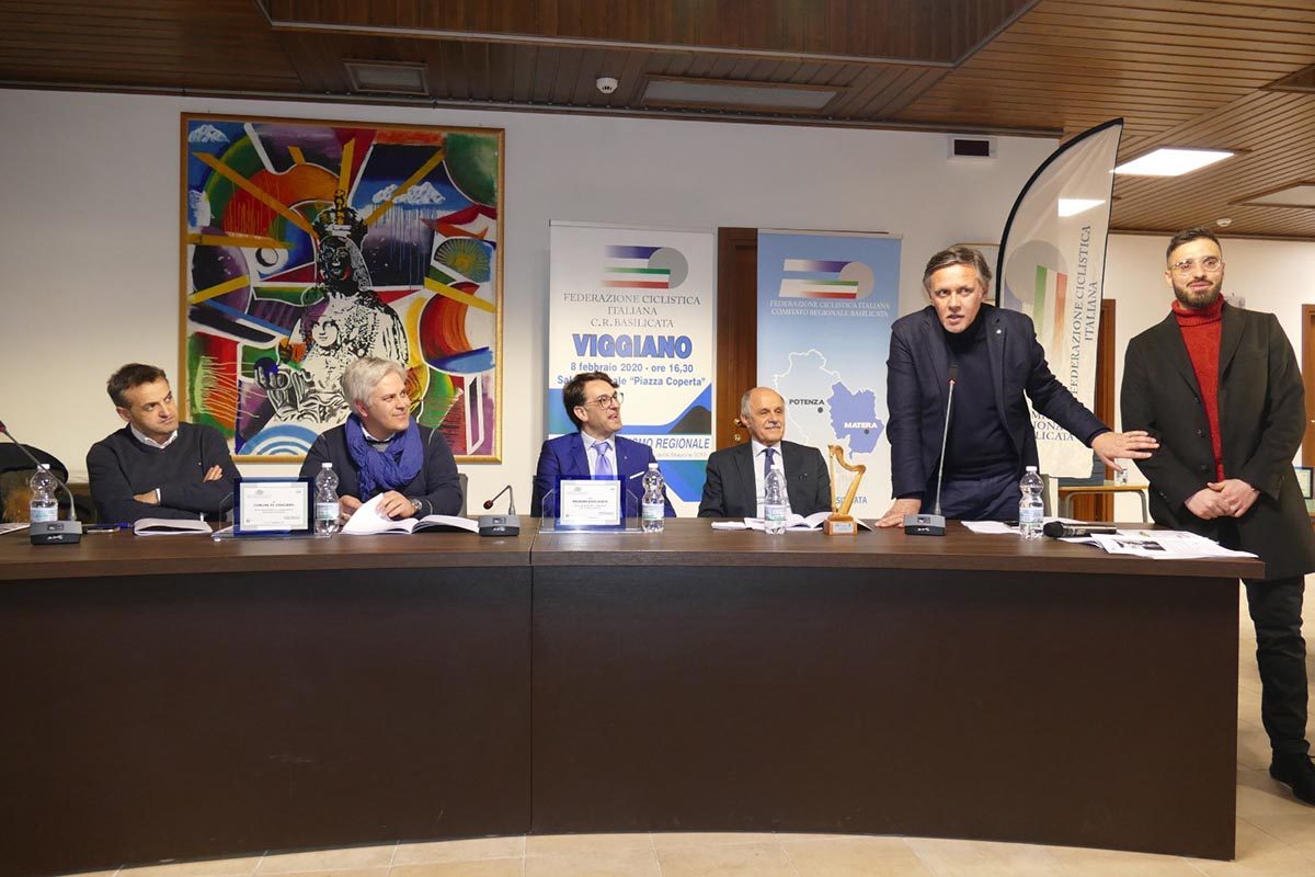 VIGGIANO (PZ) – Il ciclismo regionale lucano ha fatto tappa a Viggiano, città dell’arpa, della musica e del culto mariano per celebrare un 2019 di successi e di attività a tutto campo nel segno delle due ruote.