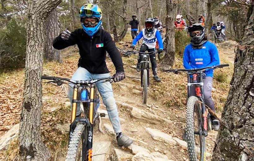 Il primo giorno si è lavorato sul sentiero “i due muri”, un tracciato con poca pendenza per concentrarsi prevalentemente sulla fluidità e sulla precisione di guida, il secondo invece sulla Dh storica di San Romolo, molto fisica e tecnica, con un’alternanza di caratteristiche diverse sia come pendenze che come terreno. In entrambi le giornate dopo alcune discese per prendere confidenza si è poi lavorato con il cronometro.