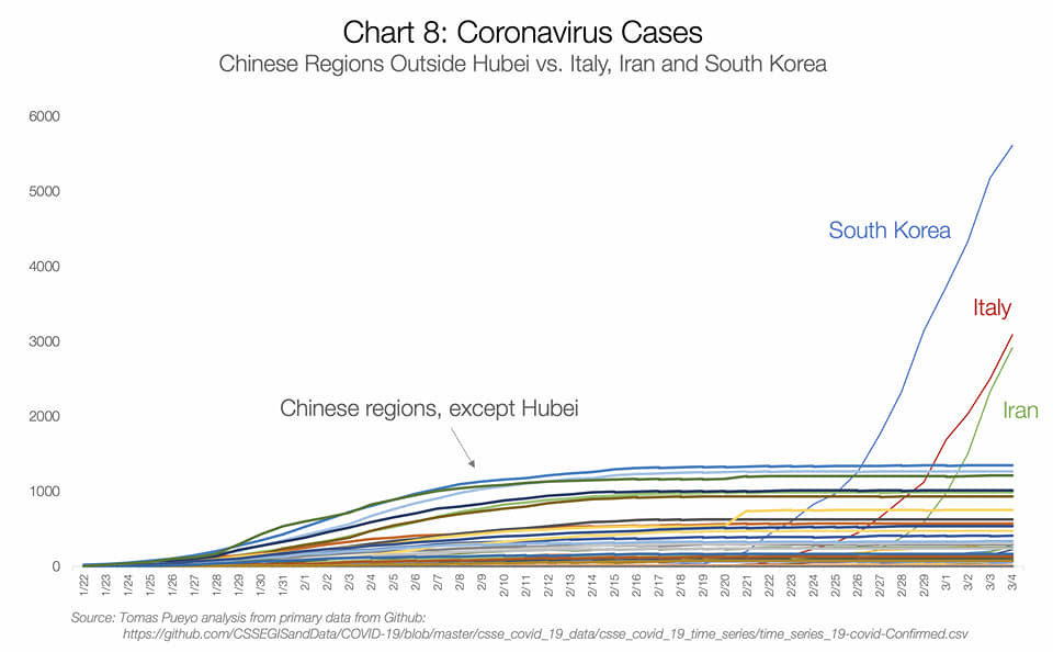 Il Coronavirus arriva ad una velocità esponenziale: gradualmente e poi all’improvviso, in tutto il mondo, è questione di forse una settimana o due. Al momento non ci sono dati per provare il contrario.