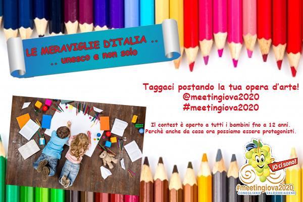 Da ora fino al 3 aprile siete tutti invitati a creare la vostra opera d’arte a tema Meeting Giovanissimi 2020 e, più nello specifico, alla rappresentazione delle “Meraviglie d’Italia. UNESCO e non solo”. Ideate, immaginate, disegnate e postate il vostro disegno nel vostro profilo instagram o facebook con l’hashtag #meetingiova2020 e il tag @meetingiova2020. Osserveremo, valuteremo, riposteremo i vostri disegni e… UDITE UDITE, le migliori 5 opere verranno ufficialmente premiate durante il meeting!